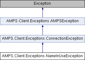Inheritance diagram for AMPS.Client.Exceptions.NameInUseException:Public Member Functions | |
