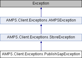 Inheritance diagram for AMPS.Client.Exceptions.PublishGapException:Public Member Functions | |
