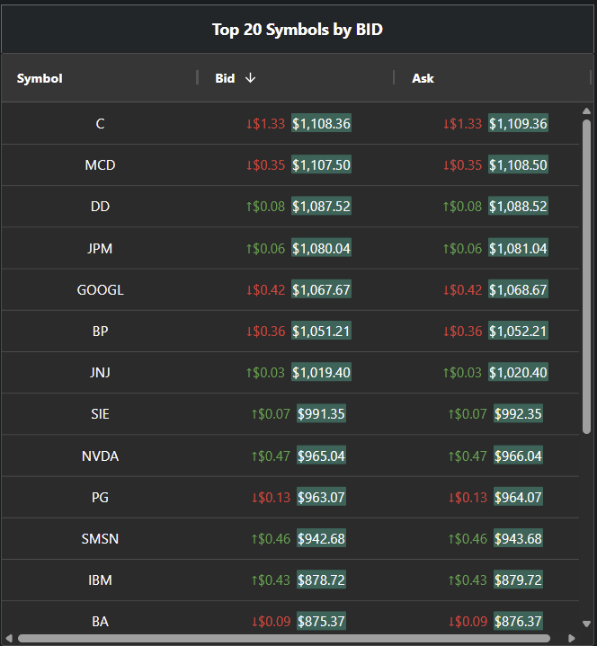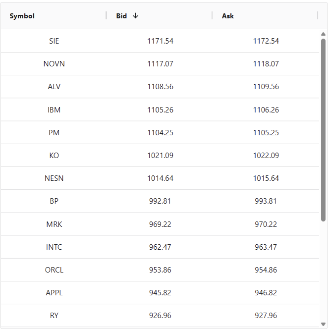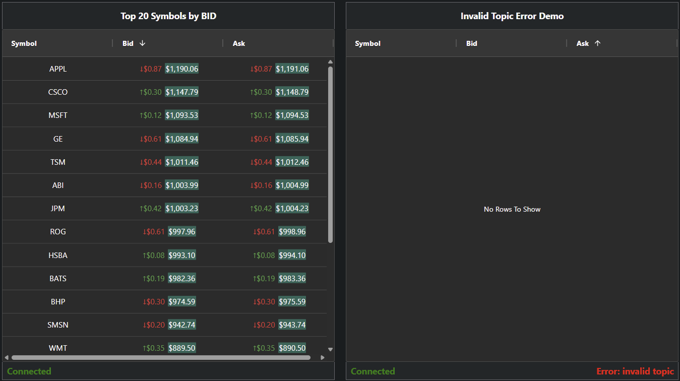 - ag-Grid: this is a great grid engine that would display the view server data from AMPS;